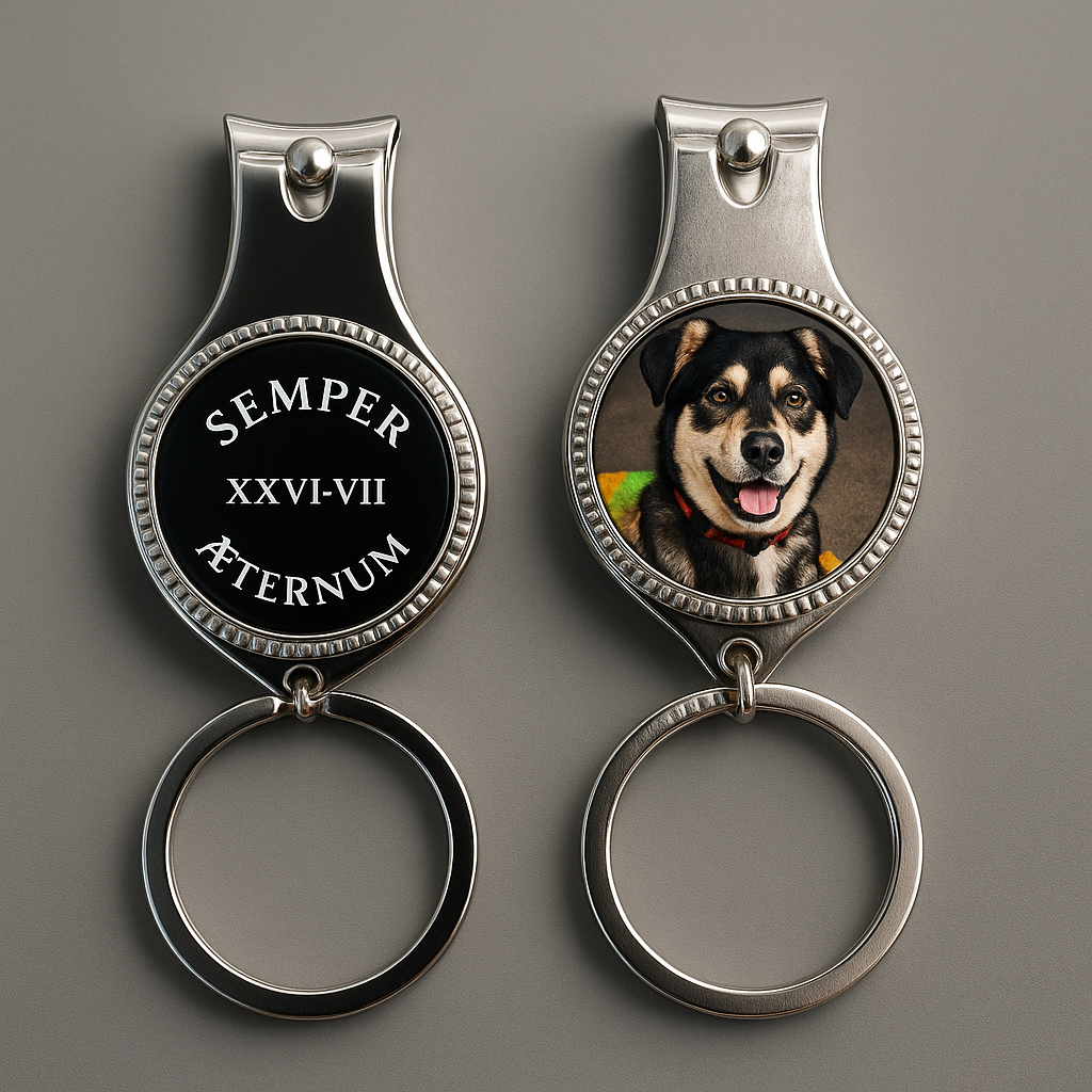 A heartfelt keepsake and practical tool all in one! This custom keychain features a photo of your choice , personalized text or design . It’s a nail clipper, bottle opener, and keyring in one compact, stainless steel accessory—perfect for gifts, memorials, or everyday use.
